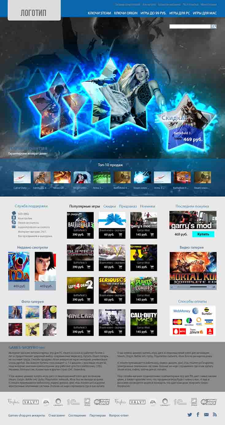 Steam Origin Разное Steam аккаунты Origin аккаунты Xbox аккаунты Базы данных Шаблоны для сайта Прогнозы на спорт Антивирусы WOT аккаунты Uplay аккаунты Warface аккаунтыПринимаем к оплате