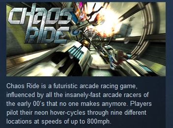 Chaos Ride - космические гонки с футуристические мотоциклами, запредельными скоростями, удивительными трассами и несколькими игровыми режимами. Кроме этого, имеется и весьма качественная графика с красивыми урбанистическими локациями и добротной физической моделью. Также отметим возможность апгрейда своей машины и удобное управление. Что касается типов игры, то, как и говорилось, их насчитывается шесть штук, представленных такими разновидностями, как «Марафон», «Выживание», «Элиминатор», «Гонка» и «Тайм Триал». |