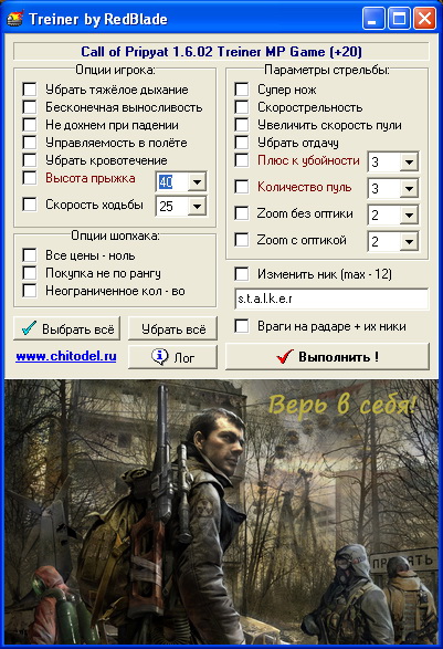 Чит для сетевой игры STALKER CoP +20 функций! - Все рабочие |