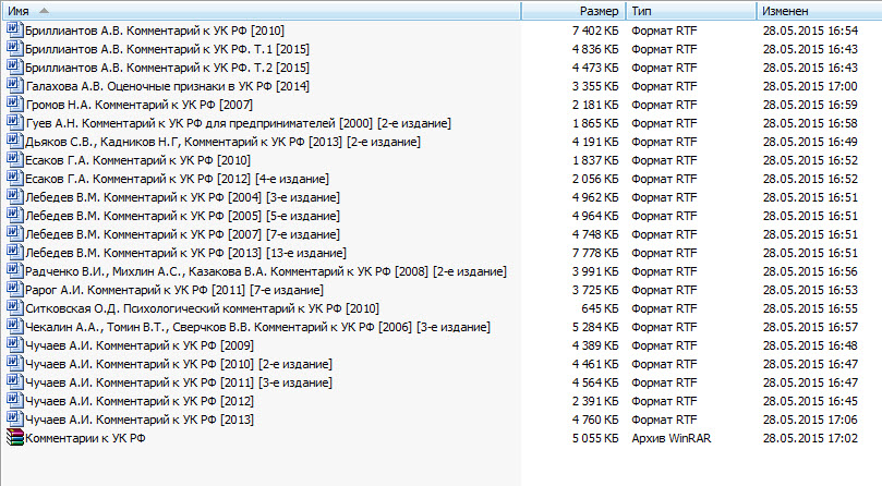 В представленном архиве располагаются комментарии к Уголовному кодексу Российской федерации под редакцией А.В. Бриллиантова, А.В. Галаховой, А.И. Чучаева, С.В. Дьякова, Н.Г. Кадникова, В.М. Лебедева, Г.А. Есаковой, А.И. Рарога, Ситковской О.Д., Радченко В.И. Михлина А.С. Казакова В.А., Чекалина А.А., Томина В.Т., Сверчкова В.В., Громова Н.А., Гуева А.Н., Скуратова Ю.И., и др. Всего представлено 23 комментария к уголовному кодексу. |