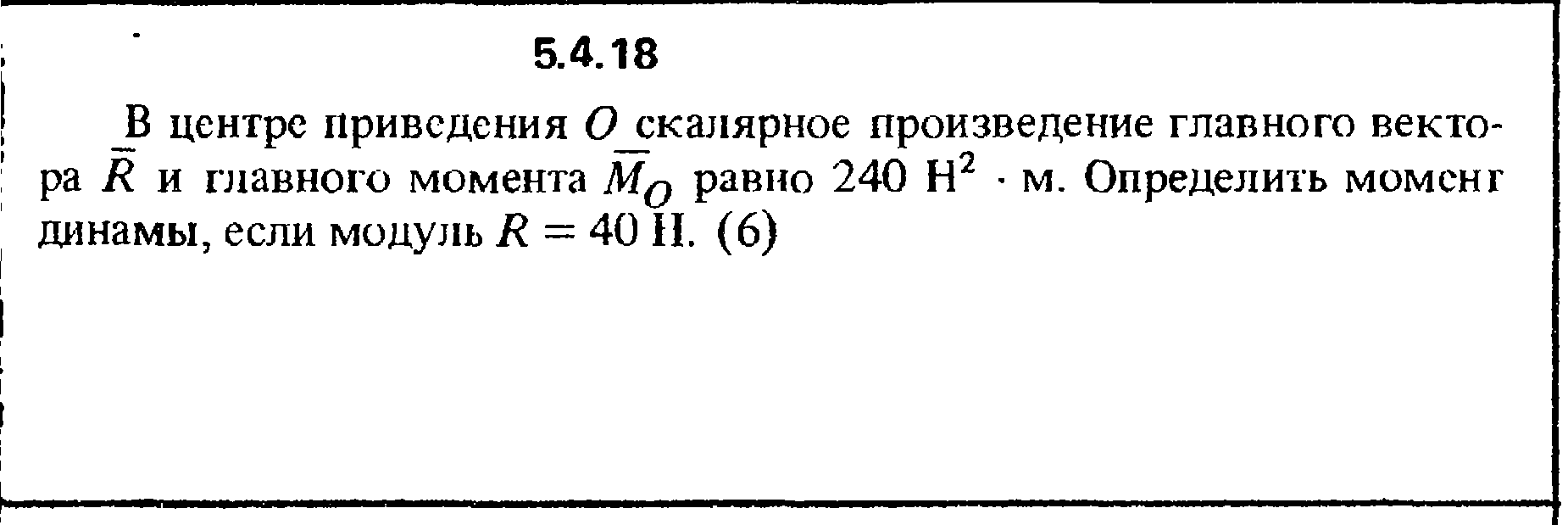| В нашем магазине вы сможете купить Решение задачи 5.4.18 из сборника Кепе О.Е. 1989 года дешево и надежно. Оплата онлайн, любым удобным способом. B центре приведения О скалярное произведение главного вектора R и главного момента MO равно 240 Н2·м. Определить момент динамы, если модуль R = 40 Н. |