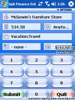 Spb Finance - мощная программа для управления личными финансами, которая, по словам создателей, обладает самым широким на сегодняшний день функционалом. Разработчики утверждают: «главным отличием нового приложения от аналогов, присутствующих на рынке, является то, что софт более рационально использует ресурсы КПК и обладает полным набором возможностей для учета и аналитики, а не является довеском для «настольной» программы-финансиста». Spb Finance учитывает все движения денежных средств (в разных валютах), позволяет составлять бюджеты и финансовые отчеты, дает возможность кастомизировать разделение записей на классы и категории, а также защищает все данные от несанкционированного доступа с помощью шифрования. Помимо этого, программа имеет плагин для экрана Сегодня (Today), обеспечивающий быстрый доступ к финансовым данным. Особое внимание разработчиков было сконцентрировано на аналитических функциях софта и возможностях составления отчетов: программа рассчитывает чистый капитал, которым владеет пользователь (за вычетом обязательств), подводит баланс, определяет прибыли и убытки и наглядно представляет данные на схемах и диаграммах. Защита информации производится с помощью кодировки AES (Rijndael): все данные в КПК хранятся в виде единого зашифрованного файла (и такой же вид имеет резервная копия в настольном ПК), а доступ к ним защищен паролем. |
